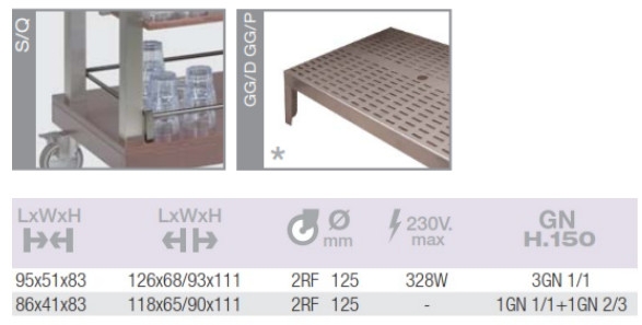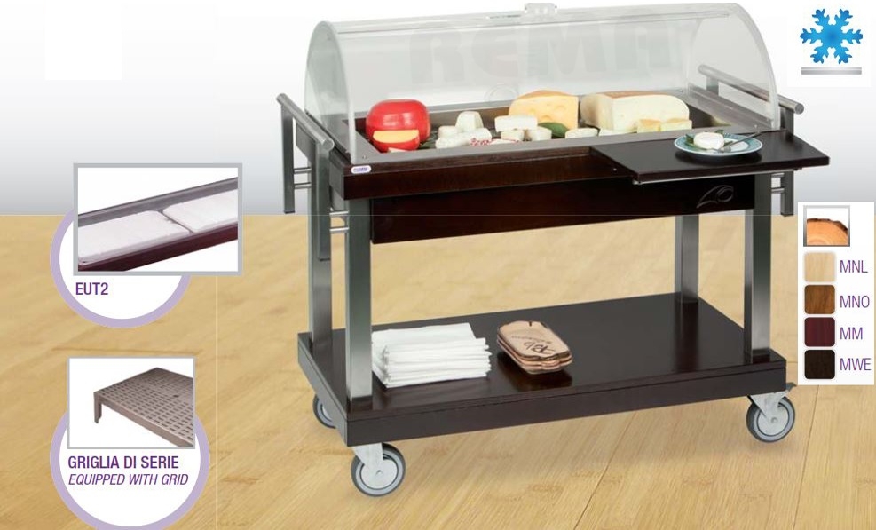 Kolica posebno namijenjena za sireve, hlađenje preko eutetičkih ploča, kolica izgledaju i jesu čvrsta, kvalitetni masivni materijali, pomoćna ploča za vađenje i pripremanje porcije omogućava elegantno i brzo posluživanje gostiju, mogućnost za isporuku s rešetkama visine 10 cm pa postaju za kolače ili za ribu visine 3 cm pa postaju kolica za ribu.