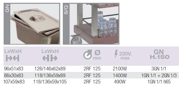 Kolica termička za ugostiteljstvo, topla servisna kolica za razne namjene u konobama, restoranima, topla kolica za sale, kolica za serviranje toplih jela u hotelu, kolica za serviranje toplih jela u restoranu, kolica za serviranje u salama hotela, konobarska topla kolica. Ova kolica spadaju u viši rang, imaju elektronski termostat, vrlo su elegantna i daju odmah gostu dojam kvalitetnog lokala, kolica su izdržljiva, kotači su pojačani, mogućnost GN posuda.