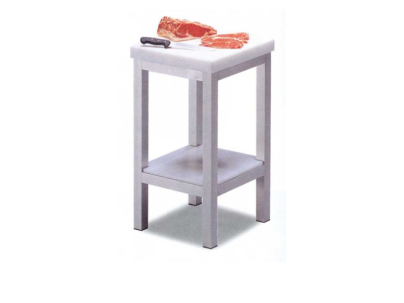 Mesarski radni pult - mali Mesnica - panj manjih dimenzija za pripremu i obradu mesa te pandlanje, izrađen od inoxa i poliuretan, visoka kvaliteta.