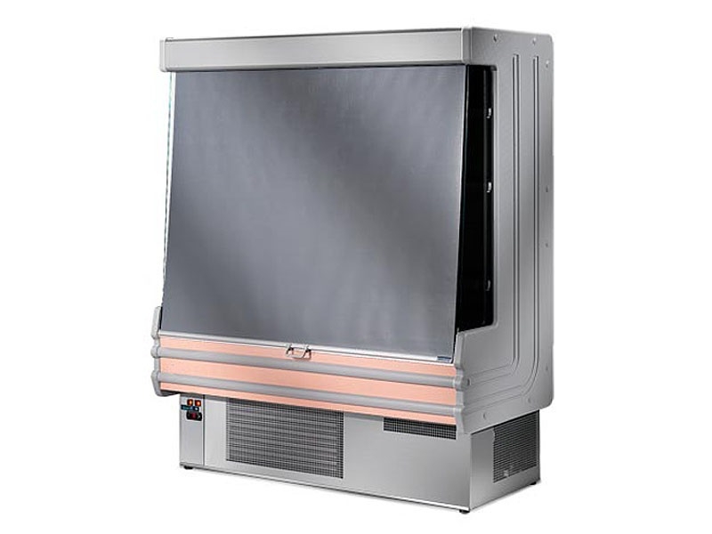 Zidne rashladne vitrine za suhomesnate ili mliječne proizvode, sireve, jogurte, piće, temp. +4/+6°C, dužine dužine 1000, 1500, 2000, 2500 ili 3000 mm, ventilirano (dinamično) hlađenje, sa ili bez noćne tende, osvjetljene, materijal izrade inox AISI 304, HACCAP standardi.