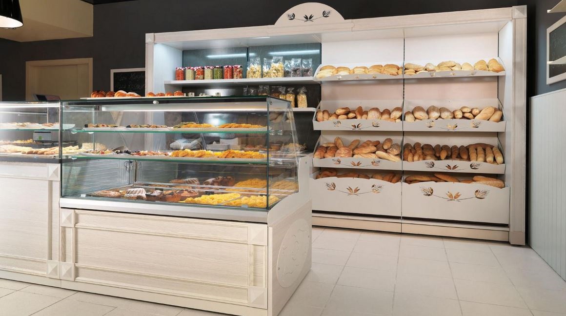 Pekara i prodaja slastica,rashladna vitrina za slastice,police za kruh i topla vitrina s ukošenim izložbenim dijelom.Materijali i izvedba su višeg ranga,samo i isključivo talijanske proizvodnje ovaj tip pekare u usporedbi s drugim ima razumne cijene.Tehnički su vitrine vrlo solidno rješene a svjetla boja daje eleganciju i dugotrajnost,ovakav model,boje i izgled ne zastarijevaju brzo nego kroz vrijeme dobivaju na imidžu koji traje.