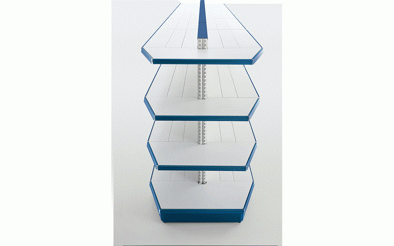 Gondole stalaže s čelnom policom omogućava bolju preglednost izložene robe i čini izložene artikle dostupnijim. Mogućnost biranja boja, dužine standardne i na mjeru, visine 145, 180, 200, 220 cm, police se mogu podešavati po visini, predviđene za izlaganje proizvoda u supermarketima, marketima, dućanima mješovite robe, papirnice, suvenirnice, pet shop, željezarije.