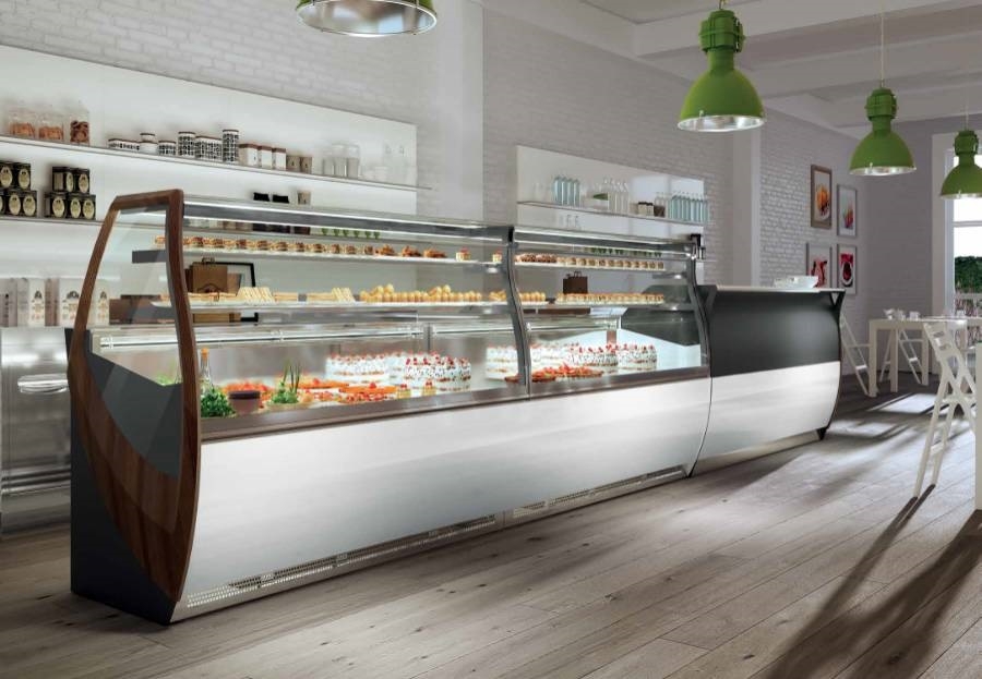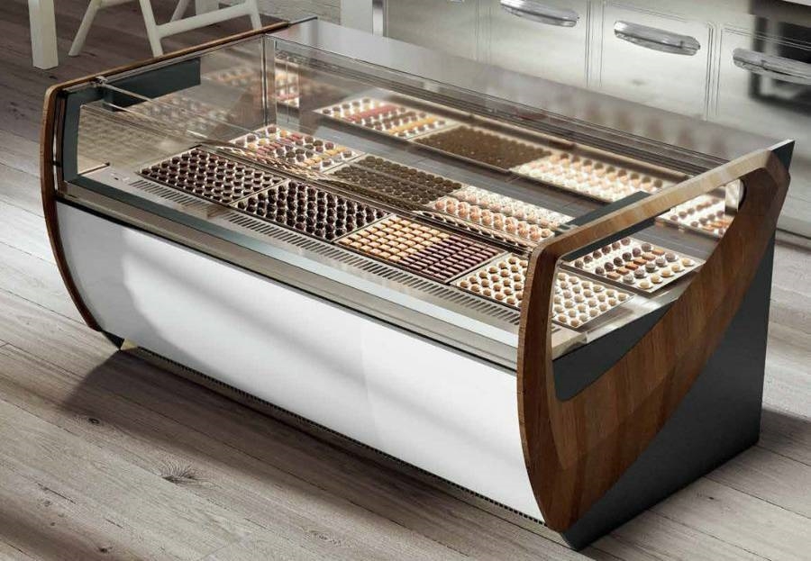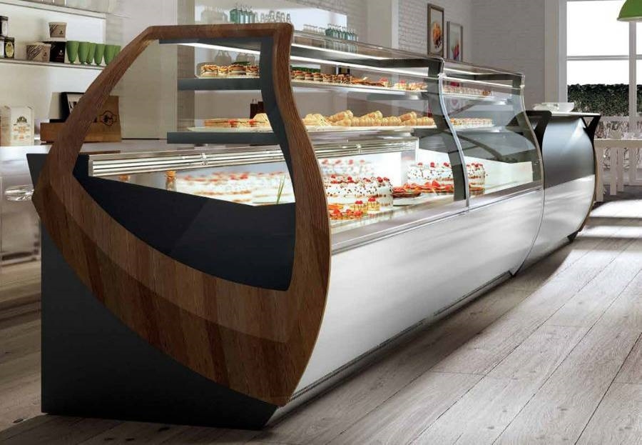 Rashladne, neutralne i tople vitrine za kolače i slastice raznih dimenzija, vitrine za čokoladne proizvode, LED rasvjeta vitrina, modernog dizajna, sa prednjim ravnim staklom, prednja maska lakirana kvalitetnim RAL bojama.