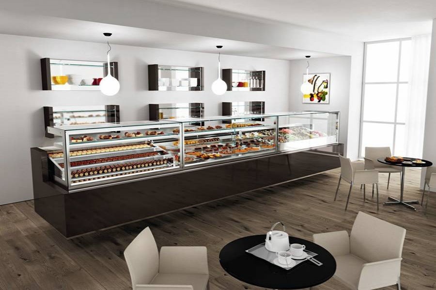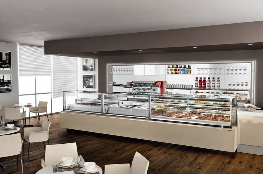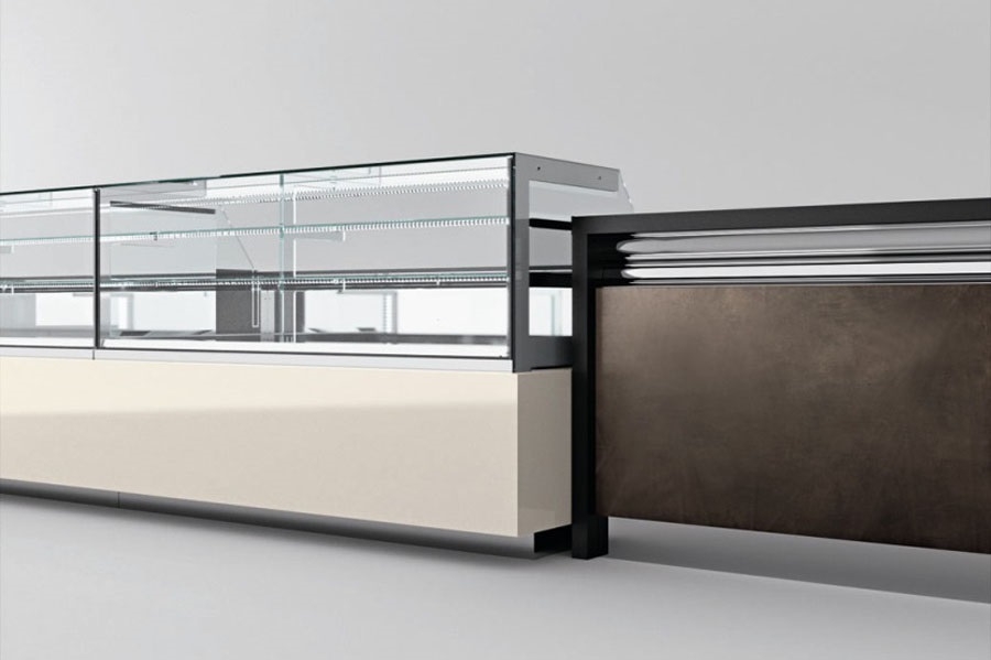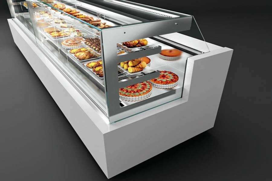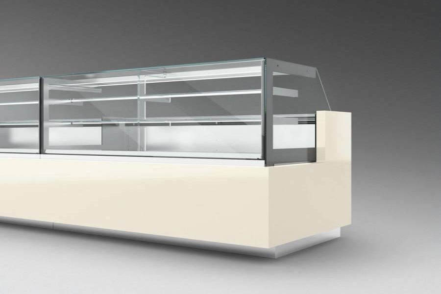 Rashladne, neutralne i tople vitrine za kolače i slastice raznih dimenzija, vitrine za čokoladne proizvode, LED rasvjeta vitrina, modernog dizajna, sa prednjim ravnim staklom, prednja maska lakirana kvalitetnim RAL bojama.