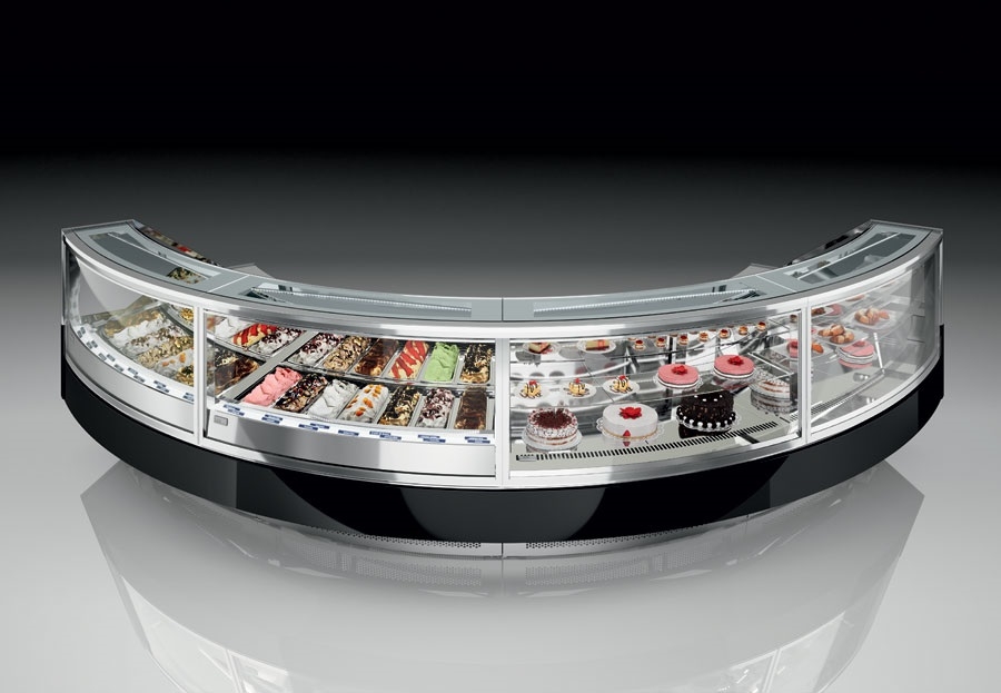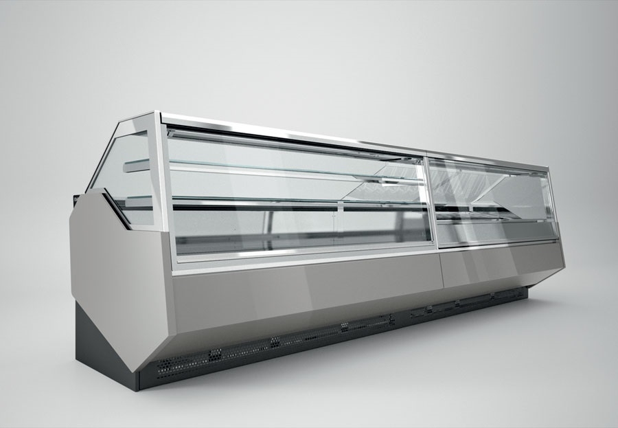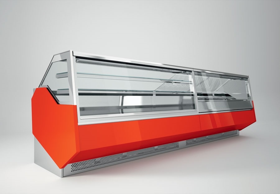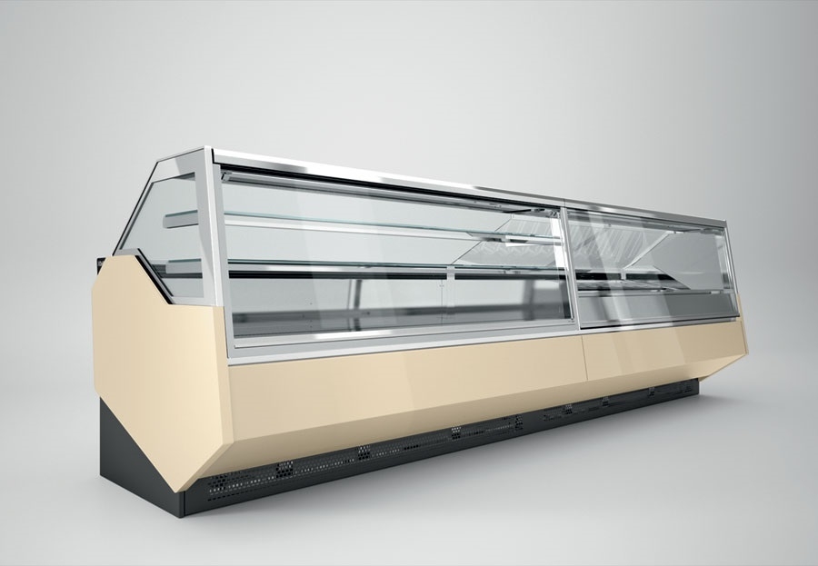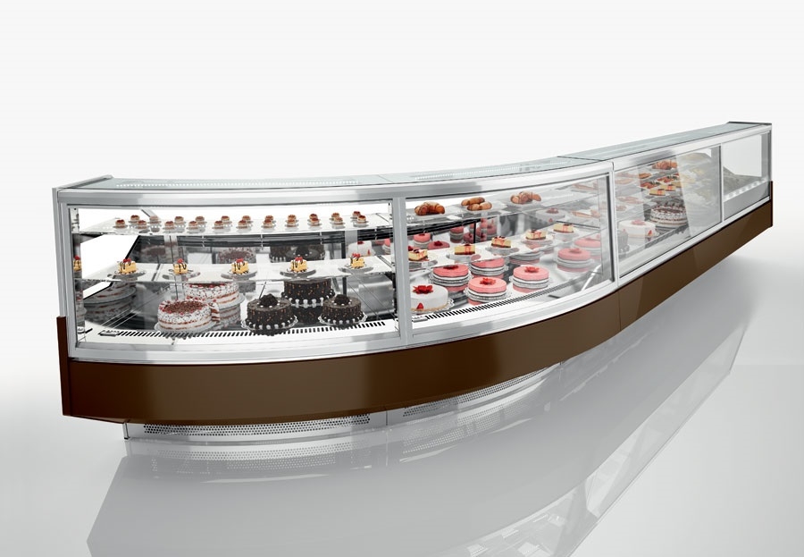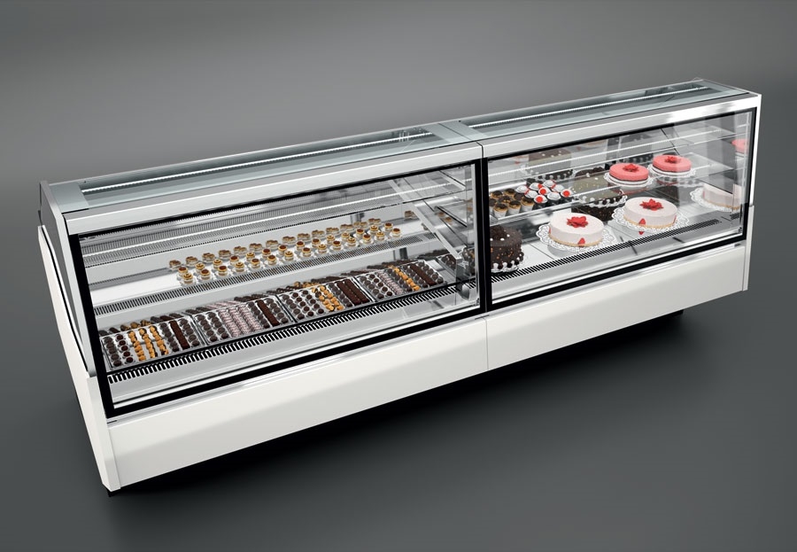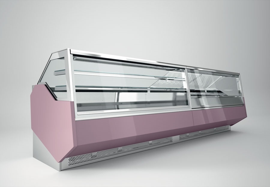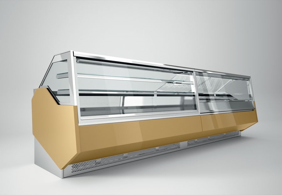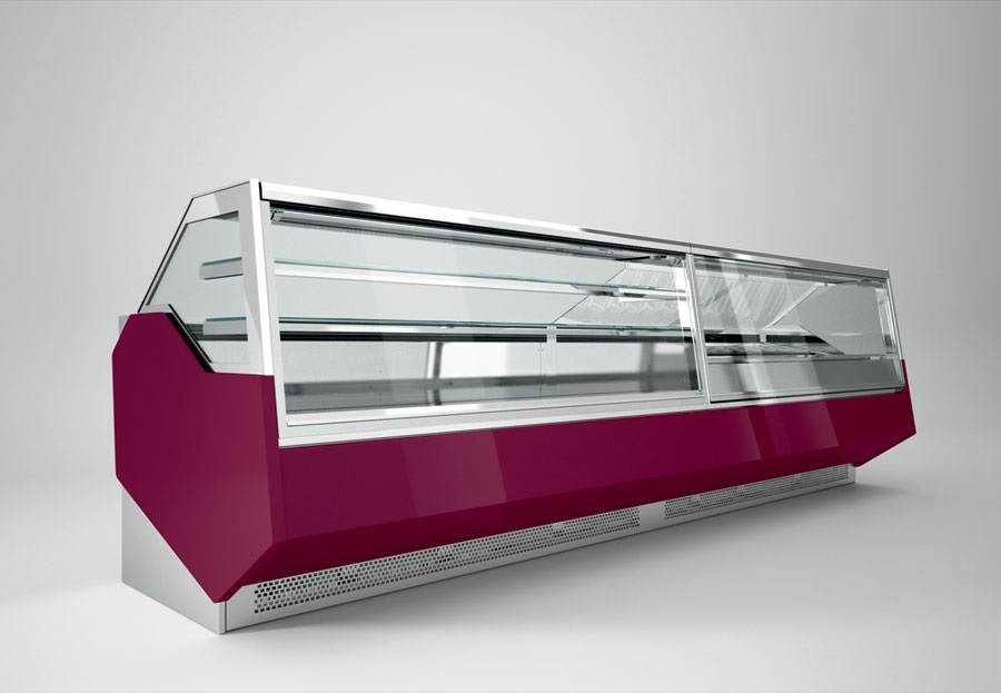 Rashladne, neutralne i tople vitrine za kolače i slastice raznih dimenzija, vitrine za čokoladne proizvode, LED rasvjeta vitrina, modernog dizajna, sa prednjim ravnim staklom, prednja maska lakirana kvalitetnim RAL bojama.