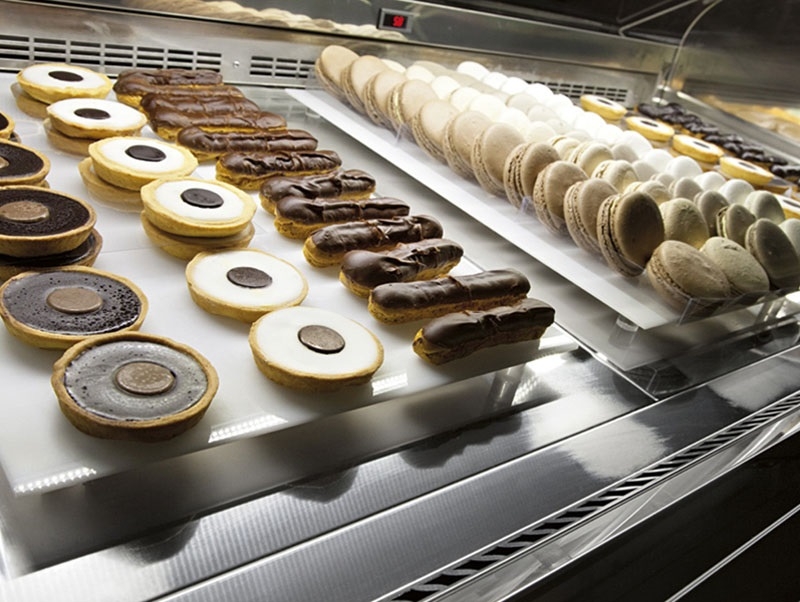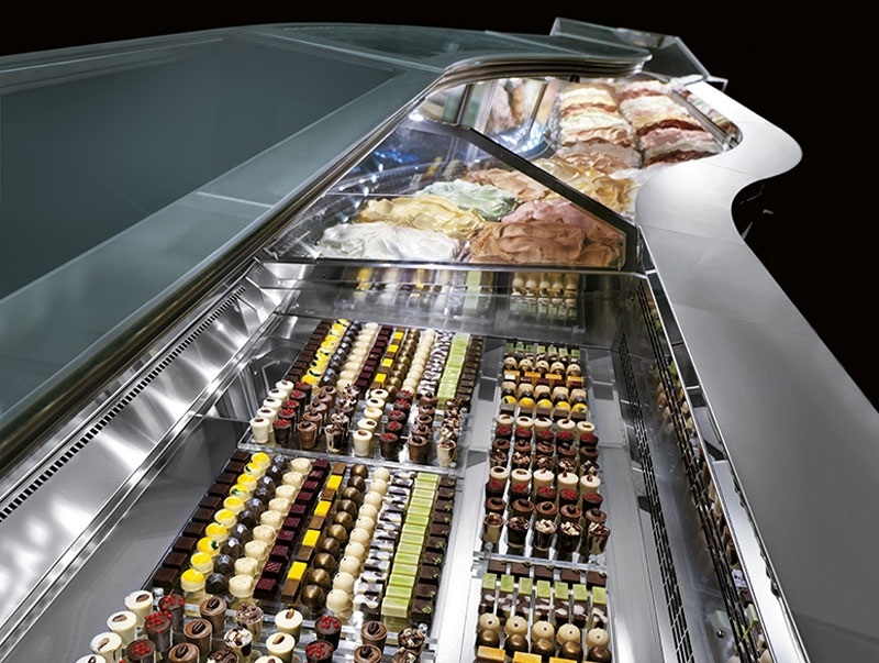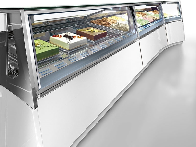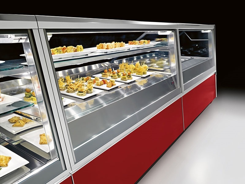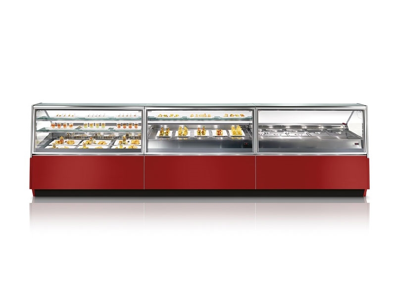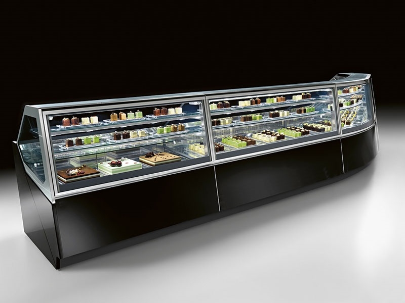 Rashladne, neutralne i tople vitrine za kolače i slastice raznih dimenzija, vitrine za čokoladne proizvode, LED rasvjeta vitrina, modernog dizajna, sa prednjim ravnim staklom, prednja maska lakirana kvalitetnim RAL bojama.