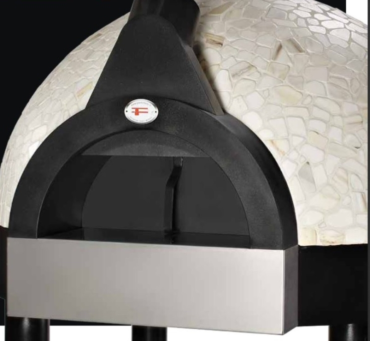 Profesionalna peć za pizzu na drva ili kombinacija drvo/plin.Pizza peć izgrađena od tzv "VIBRIRANOG" šamota,kupola debljine 8/10 cm,pod debljina 10 cm + specijalna izolacija kaolin debljine12 cm radi čega se postiše maximalna željena temperatura uz najmanje gubitke odnosno potrošnu drva ili plina,temperatura na vanjskoj stijenci ISPOD 40° C.