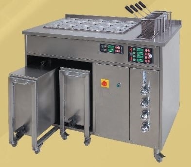 Automatska stanica za kuhanje i pripremu jela od tjestenine, kompletan uređaj koji u sebi ima prostor s banjicama za hladne umake, bagnomarie za tople umake, dvije indukcijske brze ploče za kuhanje,u donjem dijelu 4 ladice hlađene, 4 kuhača pašte s automatskim podizanjem koje se može regulirati po želji. Za šoping centre,fast food restorane i druga prodajna mjesta na prednjem dijelu stanice mogućnost nadograndnje sa prednjom prozirnom sanitarnom fiksnom barijerom koja se istovremeno koristi i kao šank za posluživanje. Razne varijante za razne situacije i potrebe, stanica može biti isporučena s kotačima a rashladni prostor s ladicama može biti zamijenjen spremnicima za vodu i u tom slučaju nema potrebe za stalni priključak na vodovodnu cijev. Mogućnost nadogradnje nape i razne druge varijante na upit