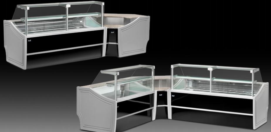 Rashladna vitrina za meso temperaturno područje 0 + 2 °C , namijenjena za srednje i manje mesnice, mogućnost različitih boja, rasvjeta LED za meso, kvalitetna rashladna vitrina s gornjom izložbenom plohom od rostfraj-a (inox) 304, donja komora od rostfraj-a (inox-a) 304, standarnde dužine 100, 150, 200, 250, 300, 350, 400 cm, izrada kutnih elemenata za kasa pult, radna površina od granita, modeli rashladne vitrine za meso PAGODA mogu se isporučiti sa ili bez donje komore.Gornja poslužavna ploha dubina 400 mm.