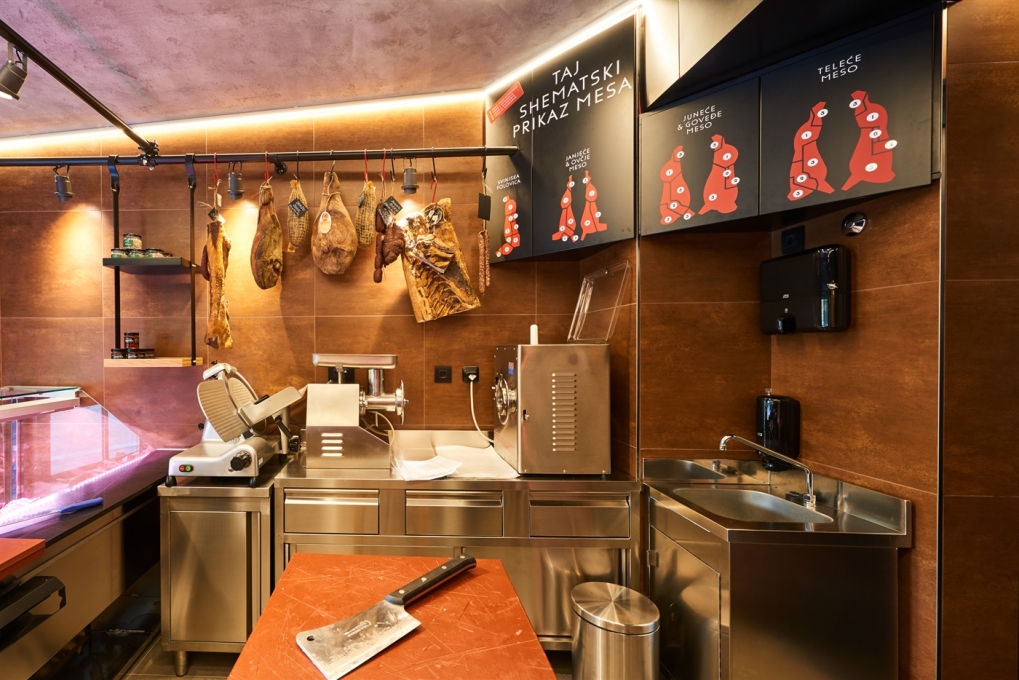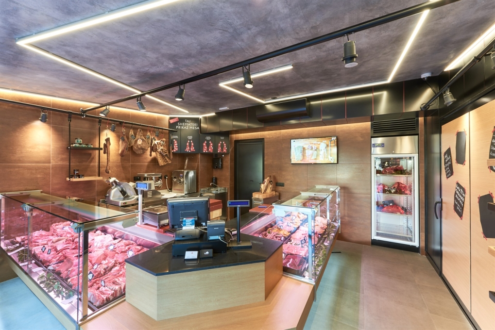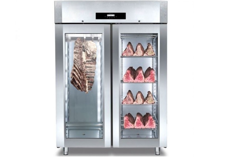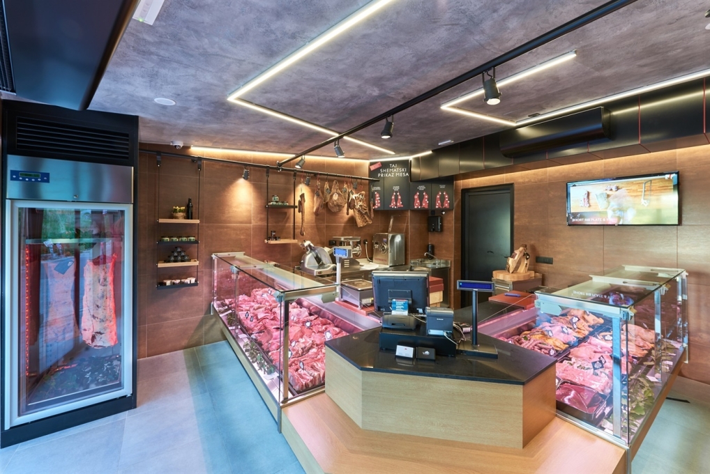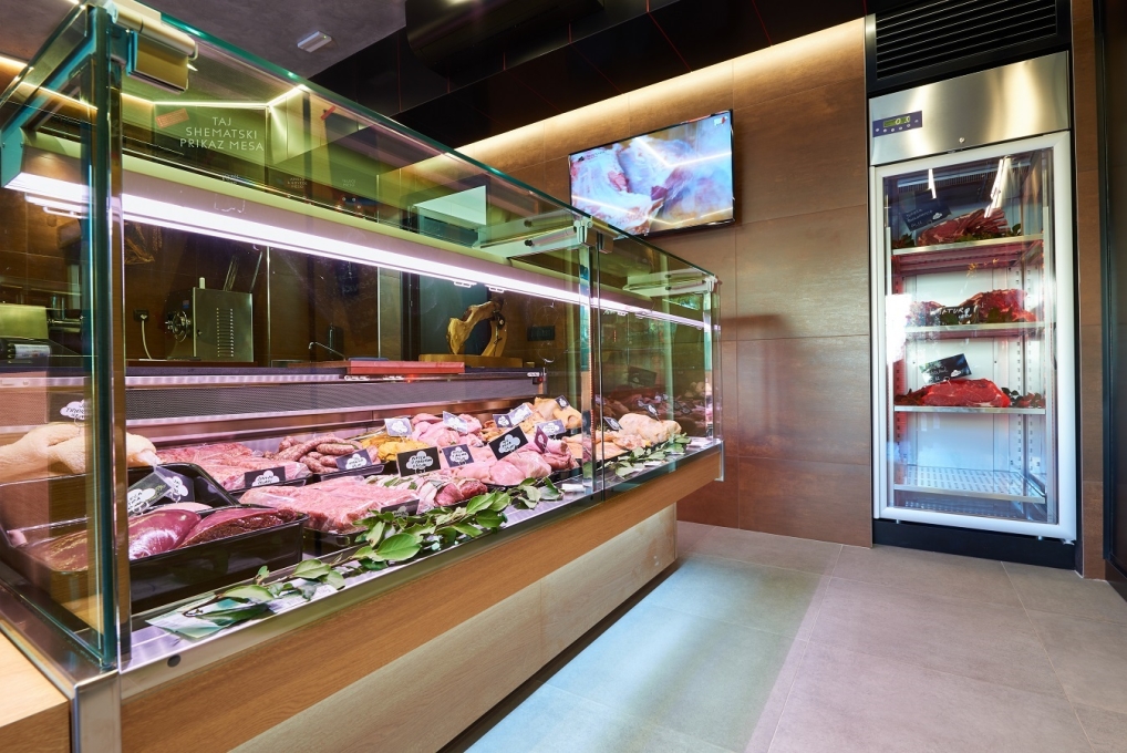 Rashladne vitrine za meso s hlađenim kutom i izložbenim dijelom dubine do 70 cm za manje mesnice. Za meso možemo ponuditi mirno hlađenje (statičko) ili ventilirano,kod vitrina za meso presudna je kvaliteta hlađenja i održavanja mesa, temperatura i vlaga za meso moraju biti idealni. Rashladna vitrina sa donjom hlađenom komorom, isparivač u komori koji hladi gorni i donji dio vitrine. U modernim mesnicama u trendu je sve, rashladni ormar komora za dozrijevanje odnosno odležavanje mesa ili popularno dry aged beef, na slici desno ormar koji ima sve funkcije za odležavanje mesa najčešće biftek u komadu u trajanju od 3 do 4 tjedna pa sve do 60 dana ovisno o veličini ili težini i rezultatu koji se želi postići. Od bifteka se nadalje mogu dobivati razni rezovi koji se kod nas u Hrvatskoj nešto razlikuju nego li su to načini odnosno rezovi u drugim zemljama. Rashladni uređaj za dozrijevanje ili odležavanje mesa ima posebne tehničke karakteristike, prvi smo u u Hrvatsku ponudili i realizirali ovaj uređaj s kojim smo postigli pravi razmjer između cijene i kvalitete. Projektiramo i dizajniramo kompletno mesnice i prodavaonice suhomesnatih proizvoda.