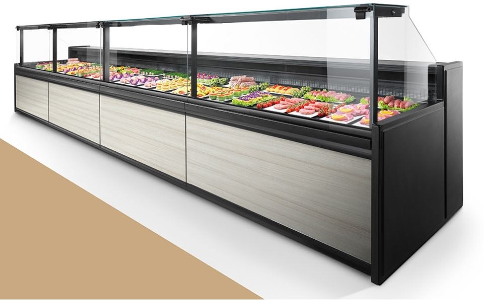 Rashladne vitrine za meso salame sireve dubokog tipa s posebnim rješenjima mirno hlađenje s ujednačenom temperaturom na cijeloj površini izložbenog prostora, trenutno najbolje vitrine za meso za najzahtjevnije mesnice, rasvjeta za meso LED, dizanje stakala pomoću cilindara na gore, lako se održavaju, peru i čiste, pregled robe je idealan, nema odsjaja na staklu. Boje po želji i potrebama mesnice prodavaonice ili delikatesa mesa. Isporučujemo gotove vitrine ili dizajniramo, projektiramo cijelu prodavaonicu prateći najnovija tehnička dostignuća rashlade za optimalno izlaganje, čuvanje i održavanja mesa. Rashladne vitrine za meso mogu biti s ugrađenim motorom ili vanjskim uređajem.