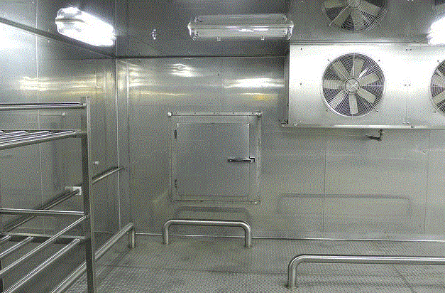 Brodske rashladne komore 3Brodske rashladne komore za čuvanje povrća i voća, suhomesnatih proizvoda, svježeg mesa te duboko smrznutih proizvoda, raznih dimenzija, paneli debljine 60, 80, 120 mm, rashladna vrata za komore u + i -, pod on inoxa za komore u minusu, sanitarni profili, U profili, rashladni uređaji tipa monoblock ili split system, ovlaživači, stalaže, ovjesi i dr.
