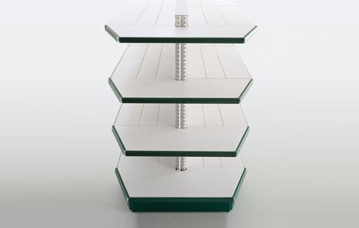 Gondole stalaže s čelnom policom omogućava bolju preglednost izložene robe i čini izložene artikle dostupnijim. Mogućnost biranja boja, dužine standardne i na mjeru, visine 145, 180, 200, 220 cm, police se mogu podešavati po visini, predviđene za izlaganje proizvoda u supermarketima, marketima, dućanima mješovite robe, papirnice, suvenirnice, pet shop, željezarije.