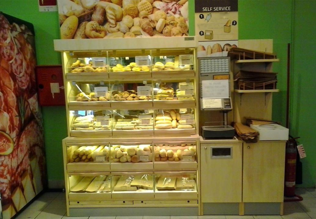 Police i stalaže za kruh self service za manje markete minimarkete markete prodavaonice kruha prodavaonice mješovite robe s prozirnim pretincima u pleksiglasu (plexiglass), sve police osvjetljene LED svjetlom za kruh, gornji dio za manja peciva, donji dio stalaže za veće kruhove, ispod pretinci za papirnate vrećice za kruh, ormarić za pribor na kojem se može postaviti vaga ako je prodaja na kg ili ako je komadna prodaja bez vage, predviđeni prostor za plastične jednokratne rukavice, kompaktna stalaža koje se može isporučiti standardno ili na mjeru. Široka primjena ove stalaže također u autokampovima i ljetnim odnosno zimskim kampovima, visoka razina higijenskih standarda u prodaji kruha.