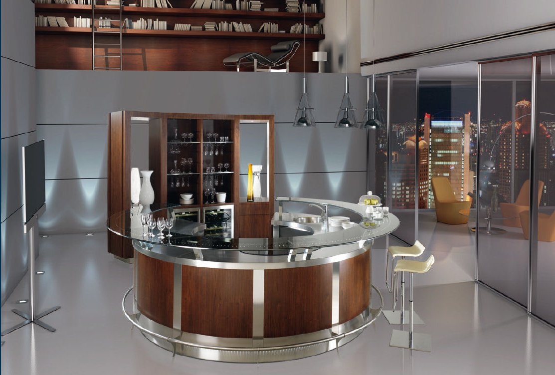 Šank za caffe bar okruglog oblika posebno dizajniran i konstruiran za velike zatvorene ili poluotvorene prostore kao što su sajmovi,izložbene hale,turistička mjesta kraj mora,hotela,na plažama uz bazene.
