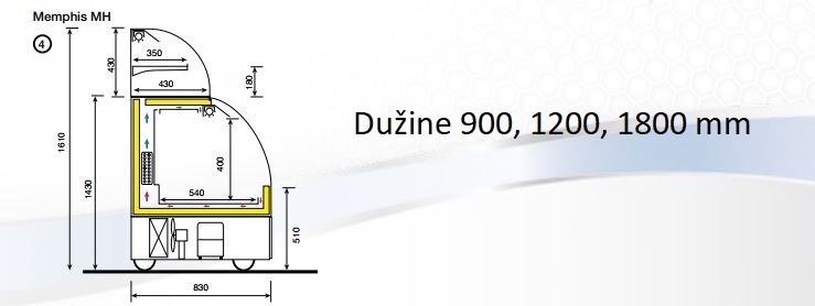 Samoposlužna izložbena vitrina za dolje piće i u gornjem dijelu za salate, voćne salate, frape, hladna jela i predjela, yogurte, Idealna rashladna vitrina za fast-food restorane,restorane brze prehrane, manje i srednje samoposluge, prodaju u lokalima na plažama uz more ili obalu rijeke ili jezera, u hotelima, pizzerijama. Rashladna vitrina donji prostor hlađen direktno, gornji indirektno.