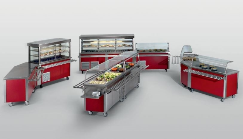 Topli hladni i neutralni elementi od INOX-a, dubina 700 mm ili 800 mm, rubovi vanjski i unutarnji bez oštrih završetaka, kuteva i spojeva, linije u koju spadaju pretinci za kruh i beštek, salvete i tacne, neutralni stol, vitrina hlađena za kolače, hladne salate voćne salate, drop-in elementi grijaći za gotova jela, roštilj za meso ribu ili povrće, vok element za pripremu tradicionalnih jela, bagnomarie, friteza, hladni elementi za gotova jela, samoposlužna rashladna vitrina za piće, kasa pult.U stražnjem dijelu neutralni elementi za tanjure pribor, roštilj s napom, pribor. Linija je kompaktna i čvrsta, lako se čisti i održava, svi elementi na kotačima radi boljeg pristupa mjestima intenzivnom zaprljanja poda.